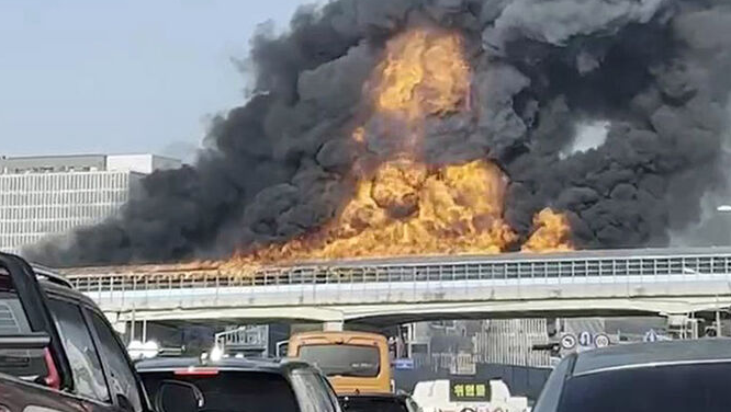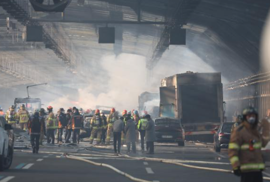 소방당국에 따르면 버스와 트럭 간 교통사고를 낸 뒤 불이 나면서 방음터널로 불이 커졌습니다.