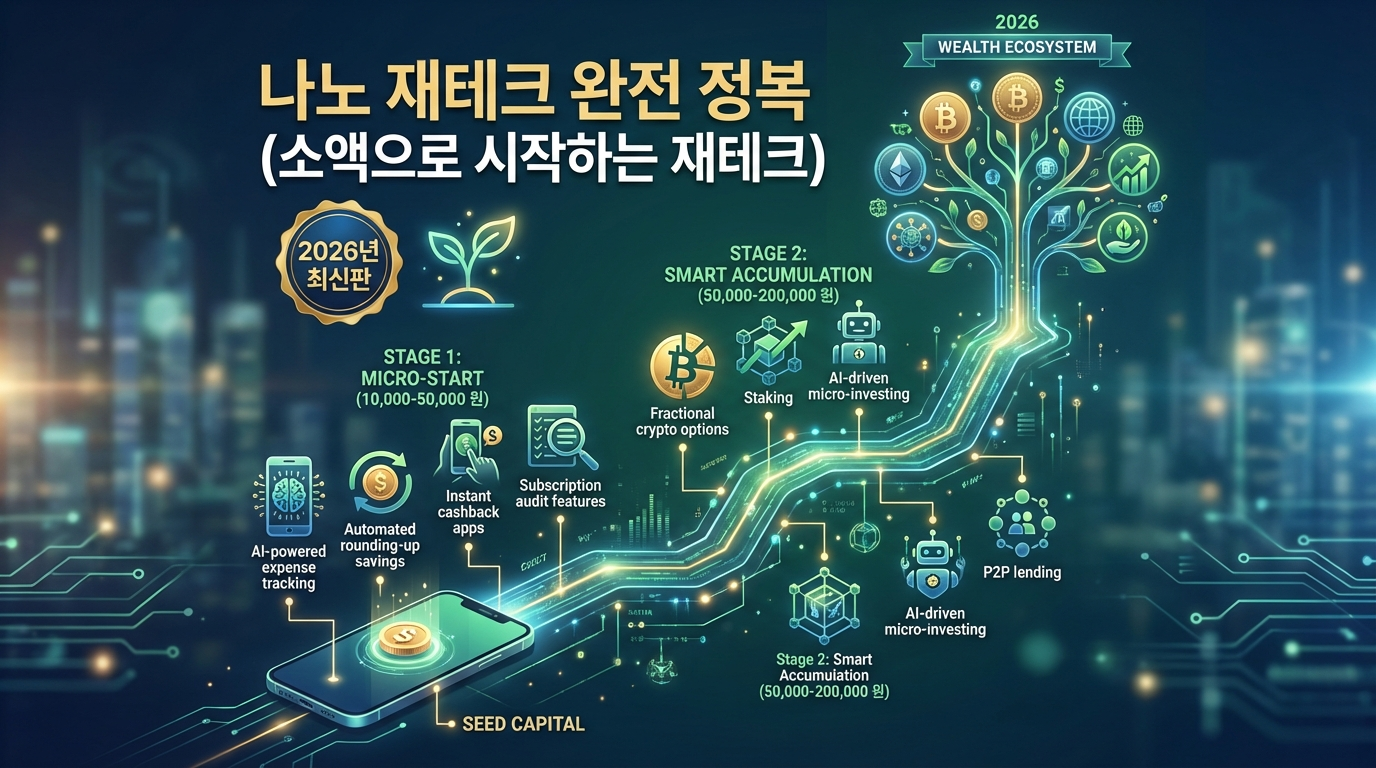 나노 재테크는 '1만 원부터 시작하는 초소액 재테크'를 의미합니다. 2026년 현재, 토스·카카오뱅크 등 핀테크 플랫폼과 저축은행의 고금리 파킹통장, 소액 ETF 투자, 365일 챌린지 등 다양한 방법을 통해 누구나 부담 없이 재테크를 시작할 수 있는 환경이 조성되었습니다. 이 가이드는 초보자도 쉽게 따라할 수 있는 6단계 실전 전략과 2026년 최신 상품 정보를 총정리한 완벽 가이드입니다.