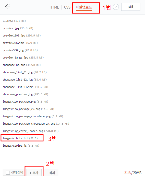 robots.txt파일을 지정하여 추가 해 준뒤 3번과 같이 파일이