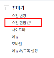 이후 내 티스토리 블로그로 이동 후 꾸미기 - 스킨 편집을 눌러 이동합니다.
