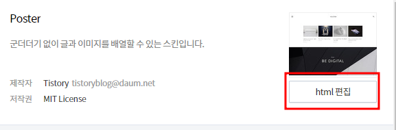 그리고 우측에 HTML편집 버튼을 아래의 이미지와 같이 눌러줍니다.