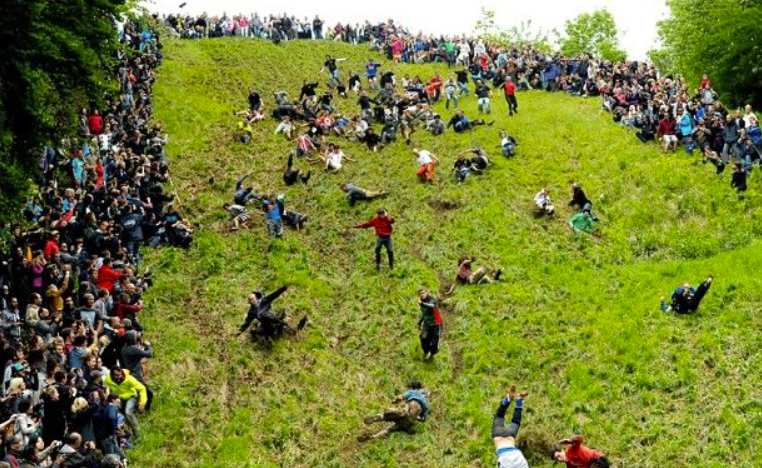 영국의 치즈롤링페스티벌은 사람들이 언덕 아래로 원형 치즈를 굴린 후 그것을 쫓는 행사이다. 이 행사는 글로스터에서 봄에 열리며, 이 이상한 스포츠를 보고 참가하기 위해 전 세계에서 방문객들이 온다. 이 특이한 사건은 15세기 경에 시작되었고 이교도의 기원으로 알려져 있다.