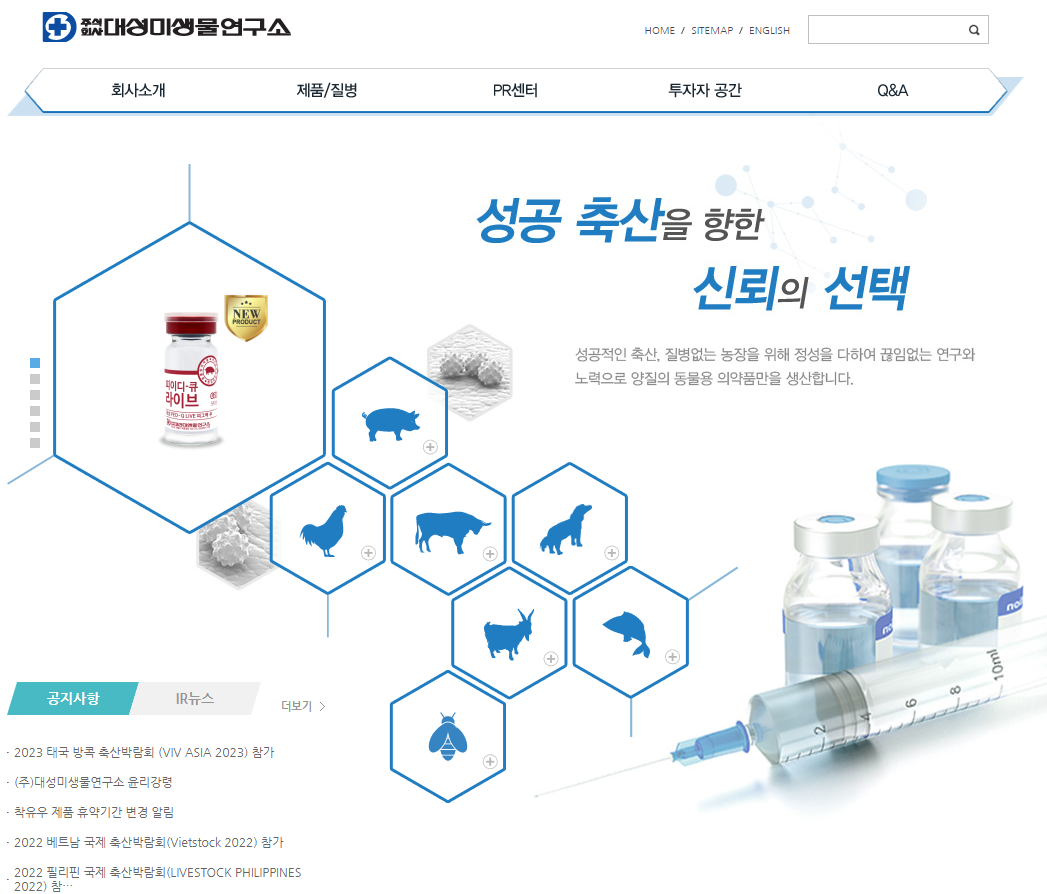 대성미생물이 최근에 4년 4개월만에 충북 한우 농장에서 구제역이 발생하면서 상승하고 있습니다. 대성미생물은 동물용 의약품 전문 제조 기업으로 구제역 백신을 비롯한 항생제, 구충제, 면역증강제 등의 의약품을 생산 판매하고 있습니다. 구제역과 관련하여 다른 동물용의약품을 제조하는 제일바이오, 체시스, 이글벳 등이 급등세를 보였습니다. 그럼 대성미생물의 매출 및 기업정보를 알아보겠습니다.