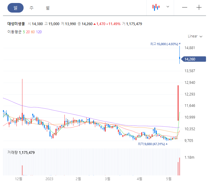 대성미생물 주가 상승…장마철 아프리카돼지열병 발생 우려↑ (2022년 6월 24일)