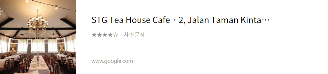 STG Tea House는 단순히 차만 파는 곳이 아닙니다. 다양한 디저트와 케이크 그리고 스테이크와 같은 양식 메뉴가 판매되고 있으며 영국풍의 건축 양식과 인테리어가 유럽에 온 듯한 느낌을 선사합니다. 가격도 굉장히 고급스러운 분위기와 메뉴에 비하면 꽤나 합리적인 가격이니 한번 꼭 방문해보세요.