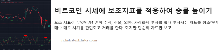 아직 가상화폐 투자에 초보이신 분들은 기준없이 감으로 거래하는 것보다는 검증된 보조 지표를 적용하여 투자하는 것이 좋습니다. 예전에 포스팅했던 보조 지표 적용 방법을 참조하세요.
