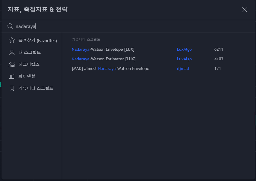 검색어에 Nadaraya라고 치면 우측에 3가지 항목이 검색됩니다. 여기서 첫 번째 항목을 클릭합니다.