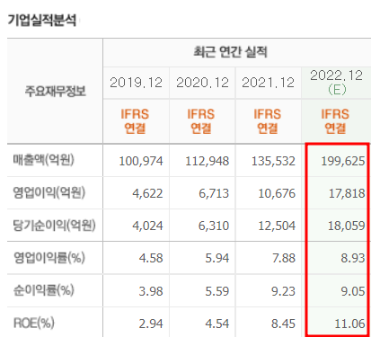 연매출도 2019년 이래 지속적인 성장을 이어나가고 있으며 2022년 예상 매출도 매우 높을 것으로 예상됩니다.