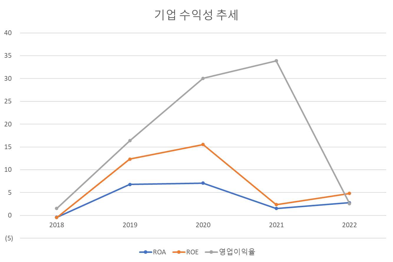 | 매출액 증가율 | 96.97% | 38.26% | -5.43% | 82.56% | -25.54% |
