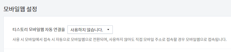 티스토리 모바일웹 자동 연경을 사용하지 않습니다로 설정