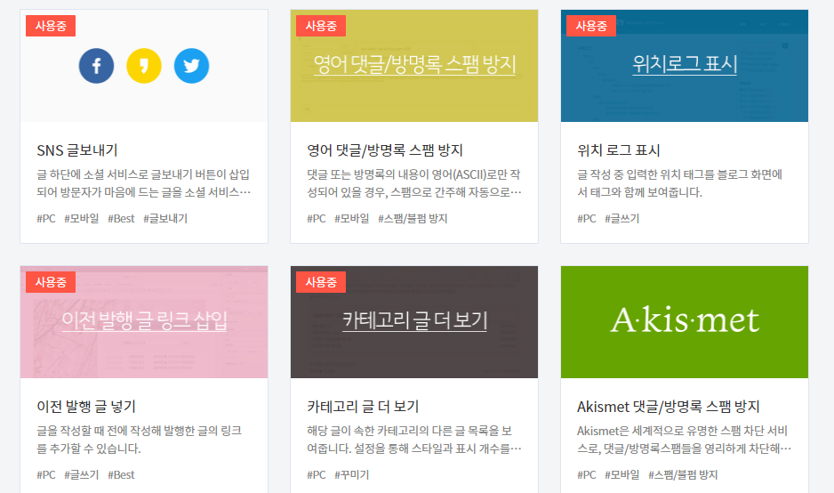 플러그인 설정은 최소화하는 것이 블로그 로딩 속도 최적화를 위해 좋고 기본적으로 5개 항목을 사용 중으로 설정합니다.
