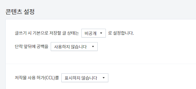 글쓰기 시 기본으로 저장할 글 상태는 비공개로 설정합니다.