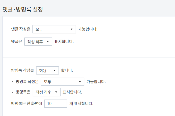 다음으로는 댓글, 방명록 설정으로 이동해주세요.