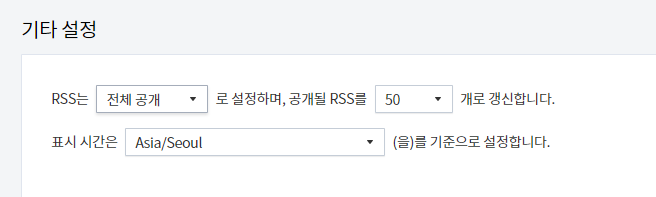 RSS를 전체 공개 그리고 50개로 설정하는 이유는 검색엔지 알고리즘이 내 티스토리의 최신 글이 있는지 인식하여 작성한 글을 가지고 갈 수 있기 때문에 최대 숫자로 변경해줘야 합니다.