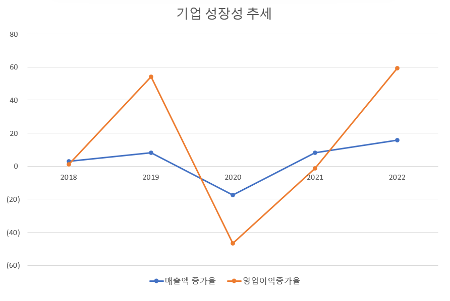 | 매출액 증가율 | 3.03% | 8.11% | -17.38% | 8.2% | 15.71% |