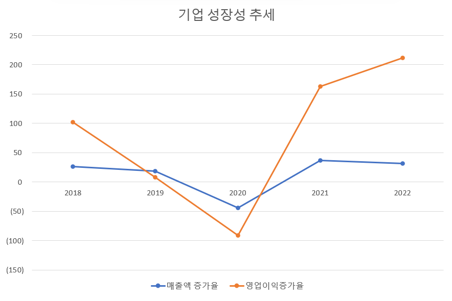 | 매출액 증가율 | 26.56% | 18.53% | -43.64% | 37.06% | 31.57% |