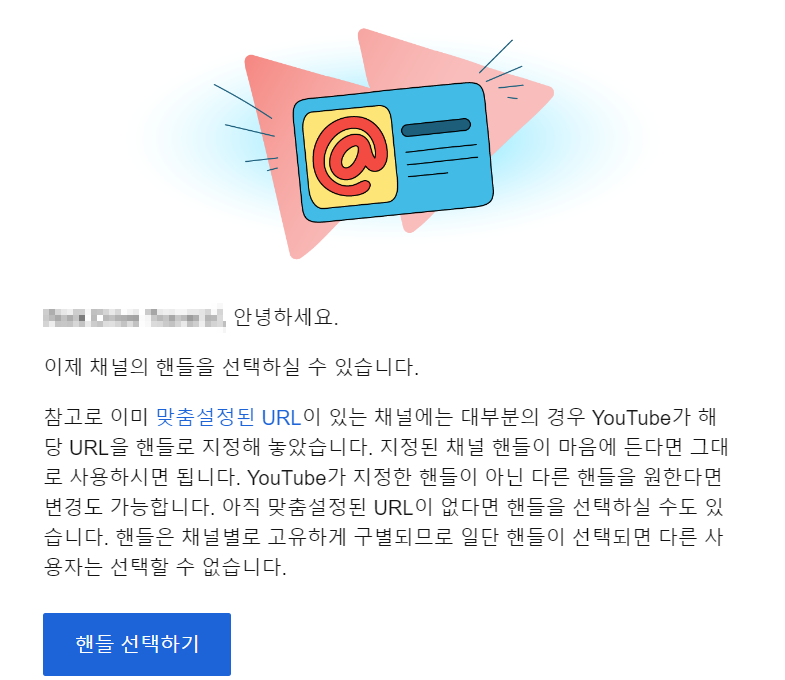 유튜브에서 핸들을 도입한다는 정보는 이미 유튜브 채널을 운영하고 계시는 분들은 이메일을 통해 안내받으셨을 겁니다.