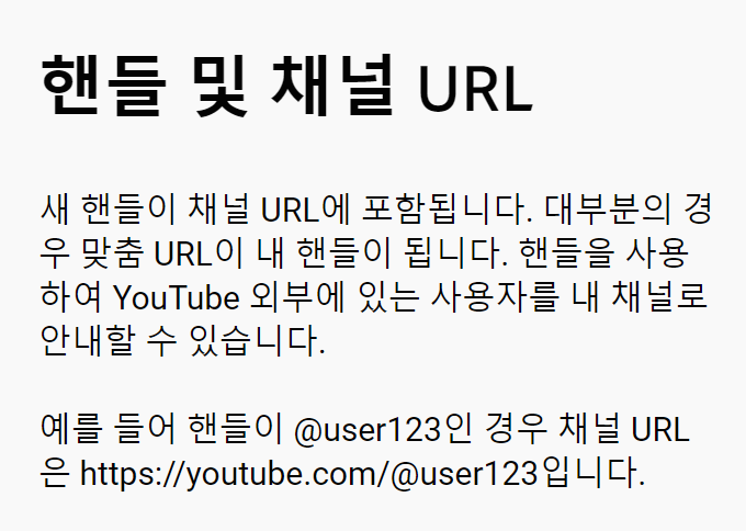 유튜브 채널 운영자가 아닌 단순 시청자들도 핸들이 적용되니 어떤 기능인지는 한번 살펴보면 좋을 거 같습니다.