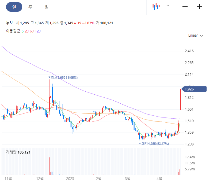 좌측: 누보 일봉차트 / 우측: 누보 주봉차트