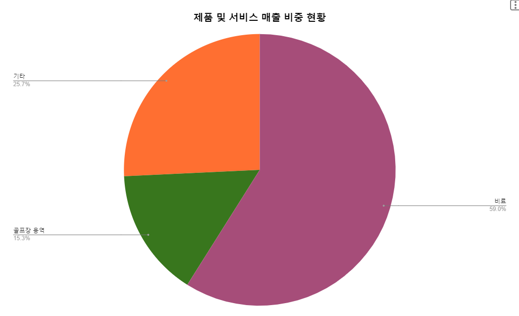 골프장 사업 매출 비중은 15.3%로 골프장 잔디를 비료를 통해 관리하고 조경 및 자재를 이용한 골프장 용역을 담당하는 사업입니다. 골프장은 경제에 민감하게 반응하는 시장으로 경제 침제기에는 타격을 받는 시장이지만 오히려 팬데믹 기간동안에 비대면 야외 레저 등의 산업이 반사 이익을 받으면서 현재 양호한 매출을 유지하는 시장입니다. 현재 거래처로는 레인보우힐스CC, 해슬리나인브릿지, 경기관광개발 등이며 그 외에 350개의 골프장에 잔디 및 조경에 사용되는 비료를 공급하고 있습니다.