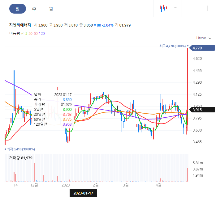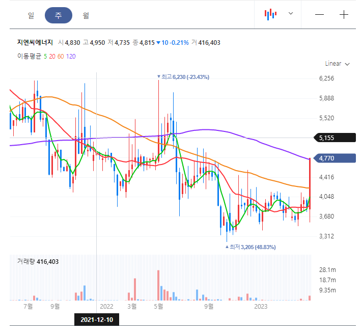 두번째, 또한 최근에 지엔원에너지를 매각하면서 약 320억원의 매각 차익을 거둬들이면서 PER5를 기록하며 재무재표에 큰 개선과 함께 확보한 자금을 통해 다른 신사업에 대한 투자 기대 심리가 상승에 영향을 준 것으로 보입니다. 또한 지엔씨에너지는 폐플라스틱 열분해 과정에서 발생하는 합성 가스의 발전 사업에도 진출할 예정입니다.