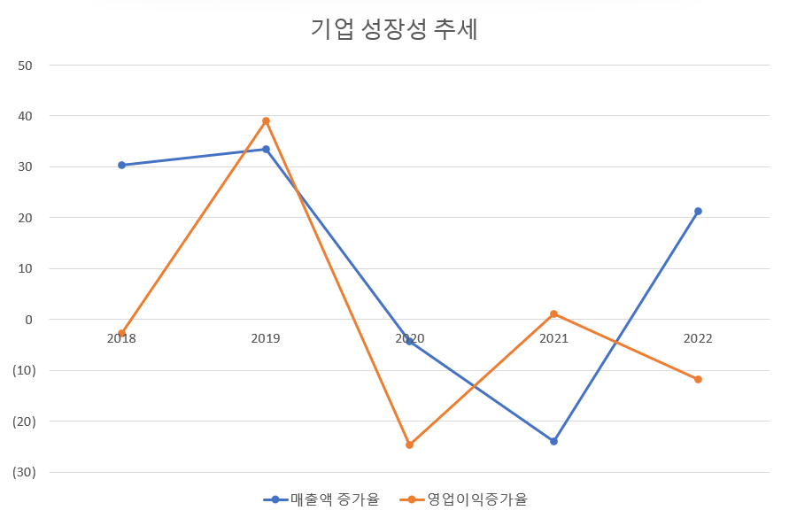| 매출액 증가율 | 30.4% | 33.55% | -4.35% | -23.93% | 21.27% |