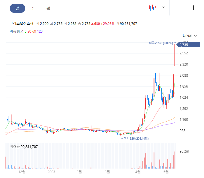 [이 특징주 버핏이라면] 크리스탈신소재, 그래핀 용액 개발 성공에 상한가 달성 (2023년 5월 10일)