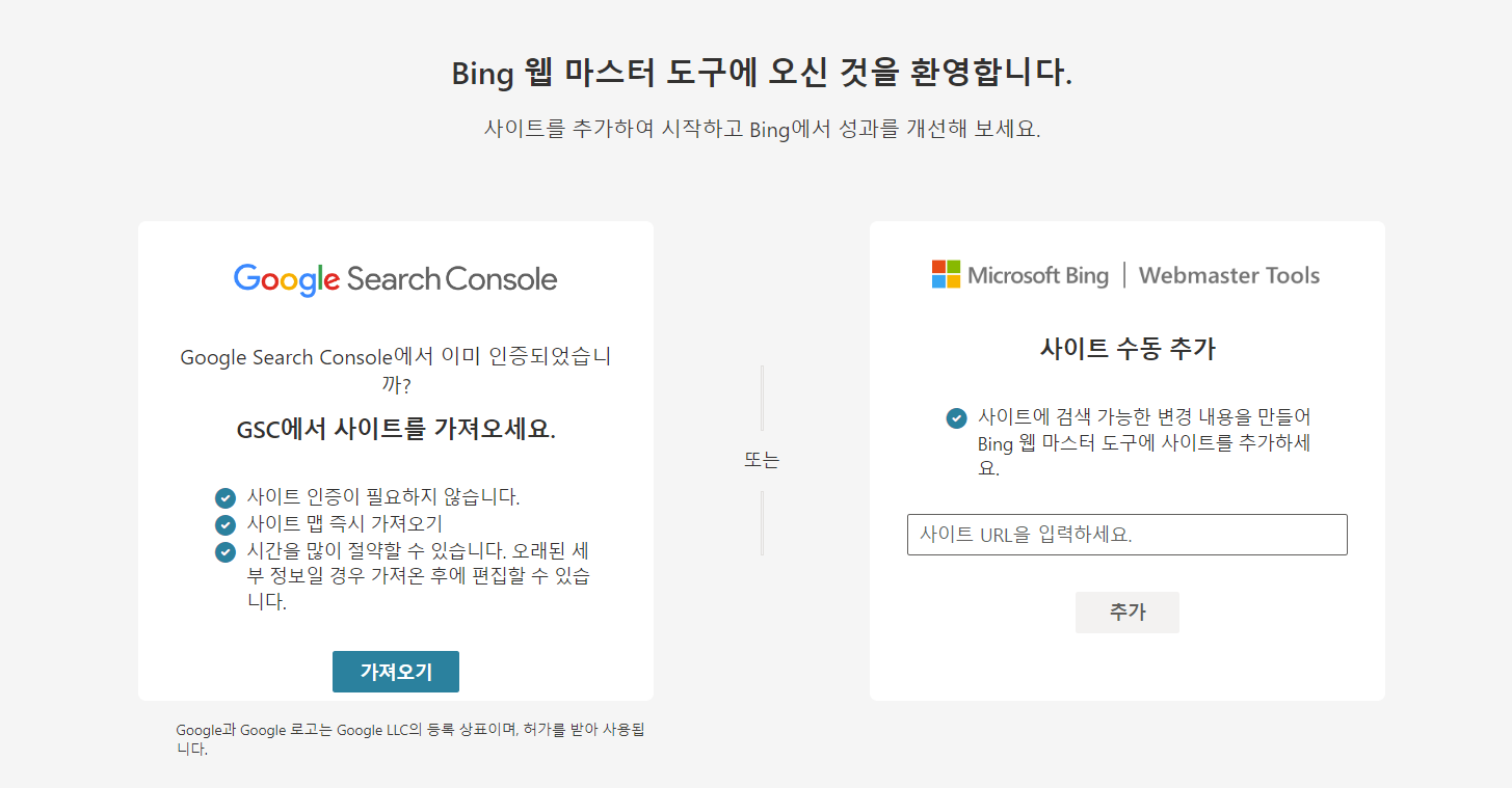 먼저 bing 웹마스터 도구를 검색하여 사이트에 접속합니다.