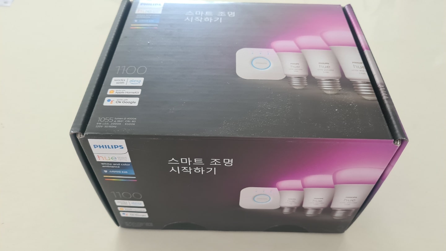 구매한 필립스 휴 스타터킷(Starter Kit)의 구성품은 컬러 엠비언스 전구 3개와 브릿지 통신 장비가 포함되어 있는 모델입니다. 전구는 기본적으로 3가지 종류의 제품이 존재합니다.