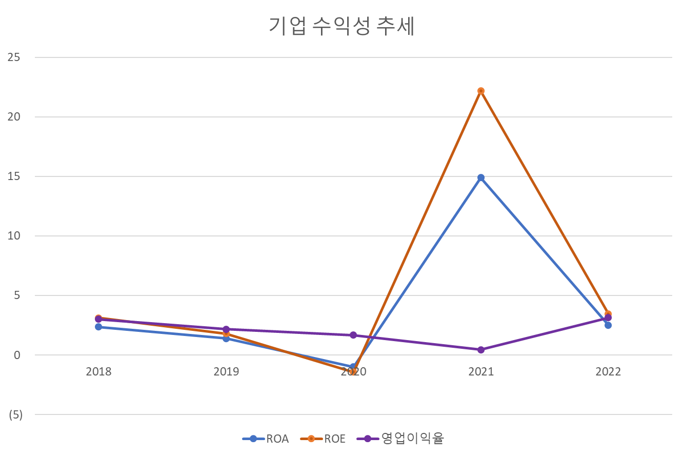 | 영업이익증가율 | -25.57% | -49.08% | -37.82% | -65.58% | 874.27% |