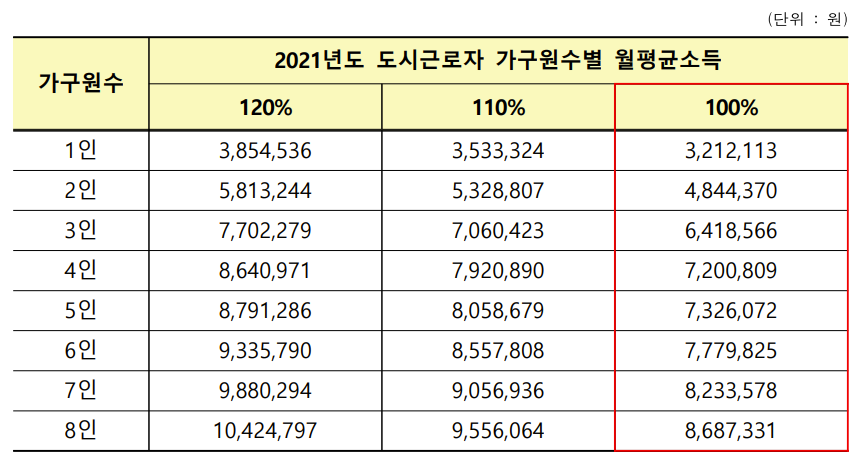 가구원수별 월평균 소득 표는 위에 참고하시어 자격 여부를 확인 하시면 됩니다.