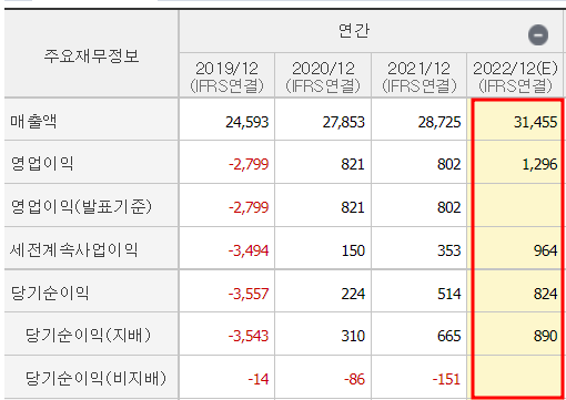 2022년 예상 매출액은 3조 1천억 원을 기록할 것으로 예상하고 있으며 2020년 흑자를 기록한 이후에 지속적인 매출과 영업이익이 상승하고 있으며 철도, 방산, 플랜트 전 사업 분야의 매출 상승을 기대해 볼 수 있습니다.