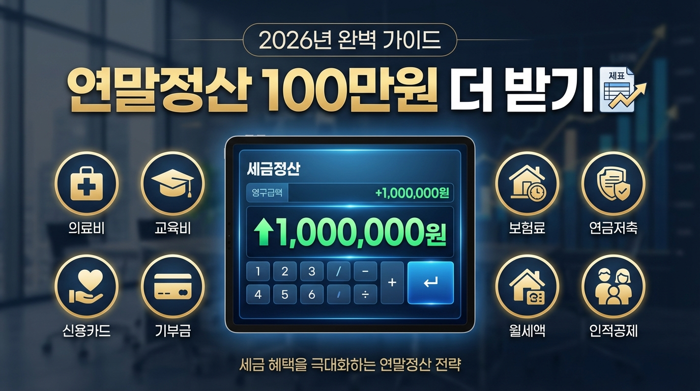 2026년 1월, 직장인들의 최대 관심사는 단연 '연말정산'입니다. 2025년 1년간의 소득과 지출을 정산하여 세금을 돌려받거나 추가 납부하는 이 시기, 제대로 준비하면 100만원 이상 환급받을 수 있습니다!