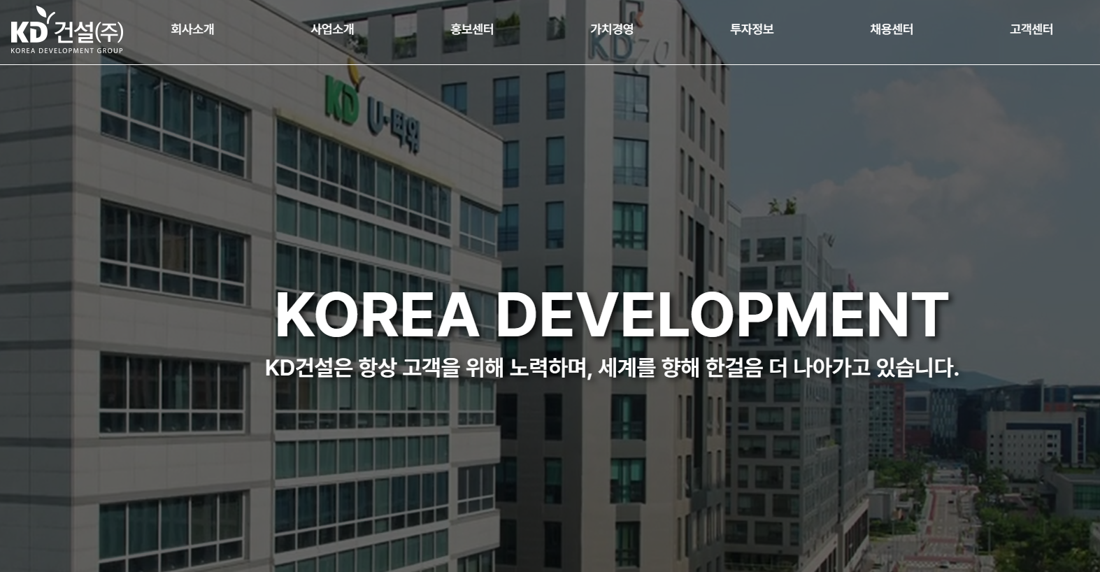 건설 사업 부문은 주거 및 상업용 건물 아파트, 주상복합, 다가구 주택, 상업용 시설 등의 건설 프로젝트를 수행하고 있으며 고유브랜드 "아람채" "KDU프라자" 를 통해 브랜드 가치를 어필하고 있습니다. 토목 및 공사업은 국가 기간 산업 분야의 도로, 다리, 교량, 철도 등의 프로젝트를 진행하며 부동산 개발 및 투자를 통해 부동산 프로젝트 개발, 투자 및 자문 등을 수행하고 있습니다.
